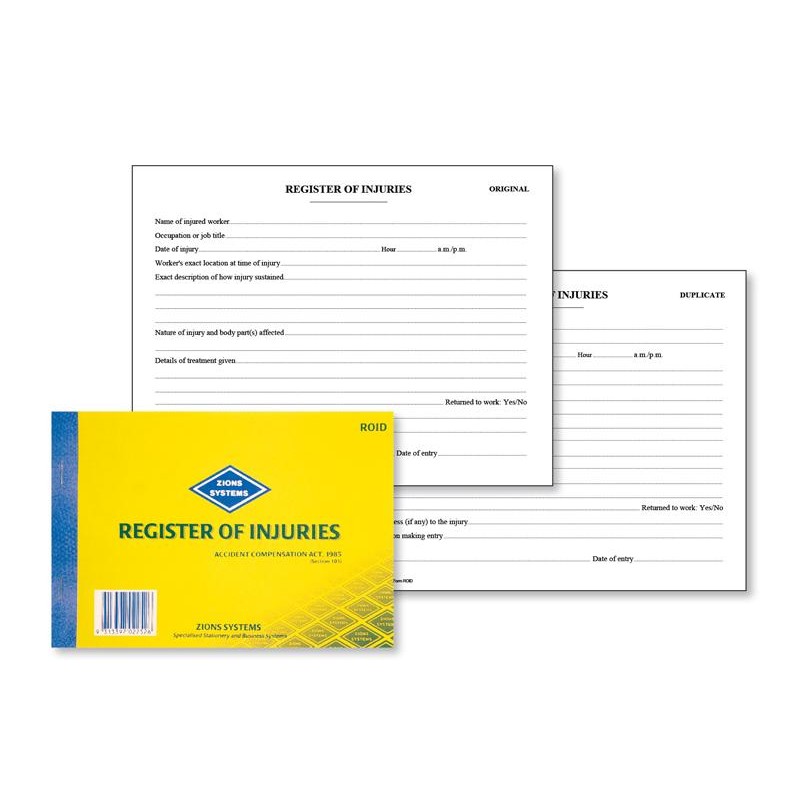 Zions Roid Vic Book Register Of Injuries
