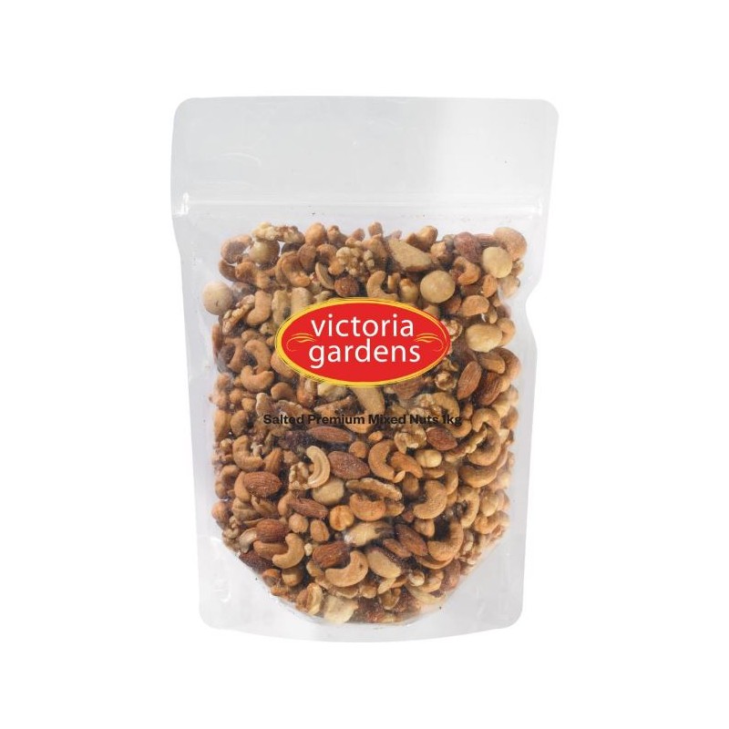 Premium Mixed Nuts Salted are perfect for snacking, lunches, casual breaks and boardroom meetings. These Premium Salted Mixed Nuts contain cashews, almonds, brazil nuts, walnuts, hazelnuts and macadamias and come in a 1Kg zip-lock resealable bag to retain freshness while you store for later use.